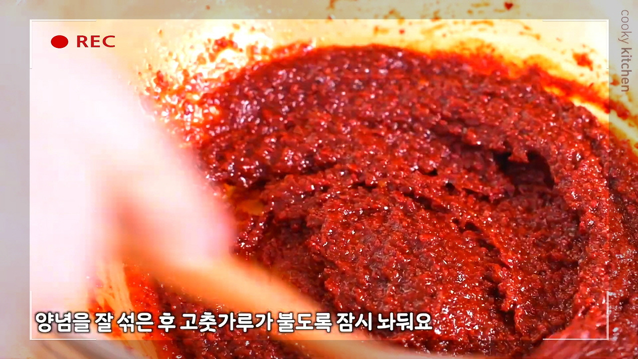 양념을 잘 섞은 후, 고춧가루가 잘 배도록 잠시 놓아두자.