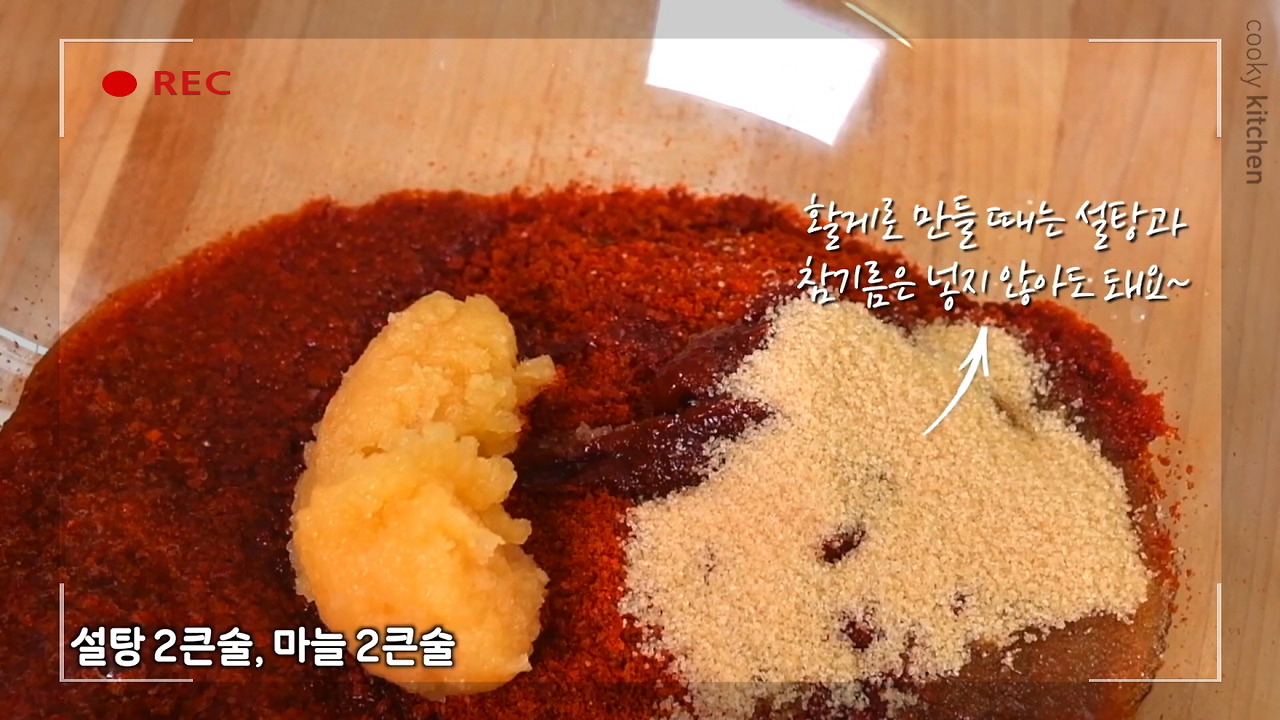 마지막으로 설탕 2큰술과 마늘 2큰술을 넣어 양념장을 완성하자. 설탕 대신 매실액을 사용해도 좋다.