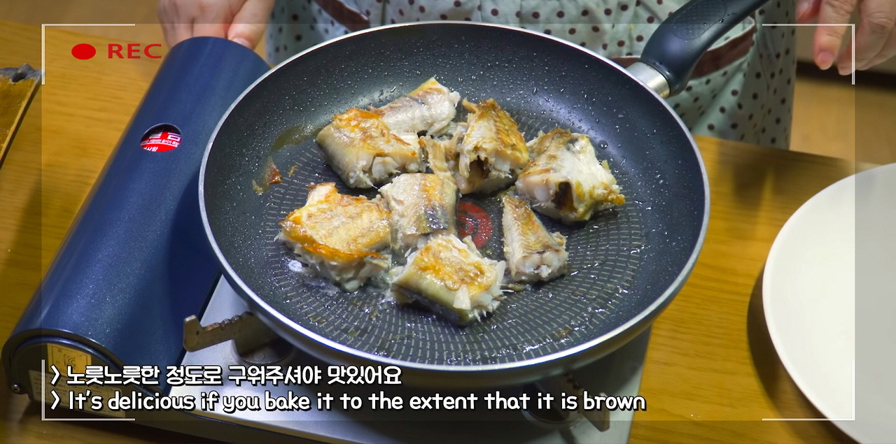 이렇게 노릇노릇한 정도로 코다리를 구워주면 된다.