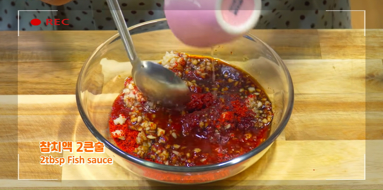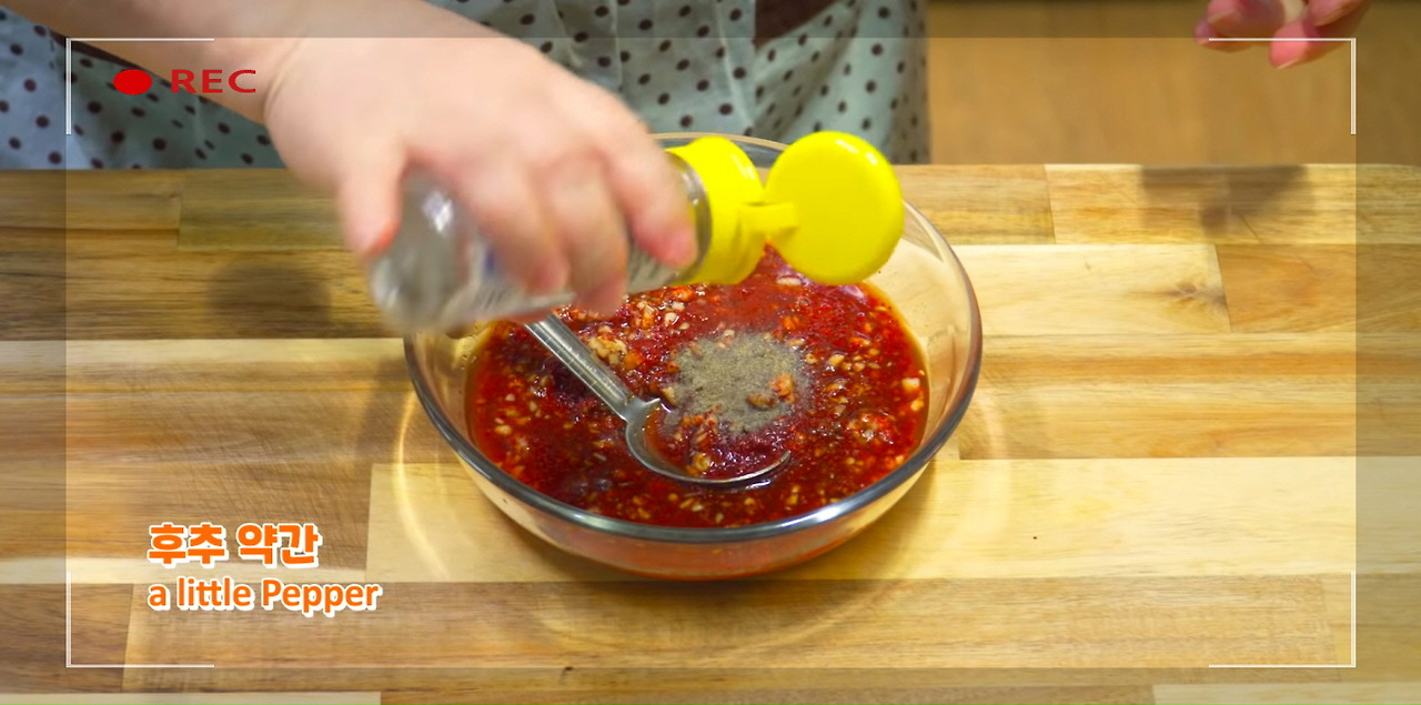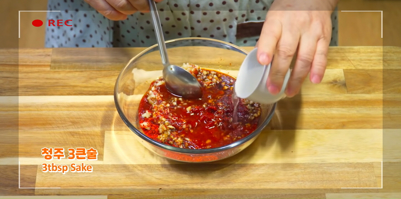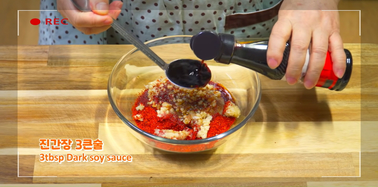 고춧가루 3큰술과 다진 마늘 2큰술을 넣어주자. 다진 마늘의 풍미와 고춧가루의 칼칼함, 그리고 색감이 코다리조림을 더욱 맛있게 만들어 준다.