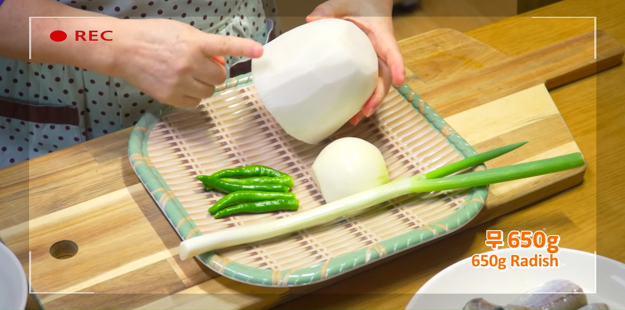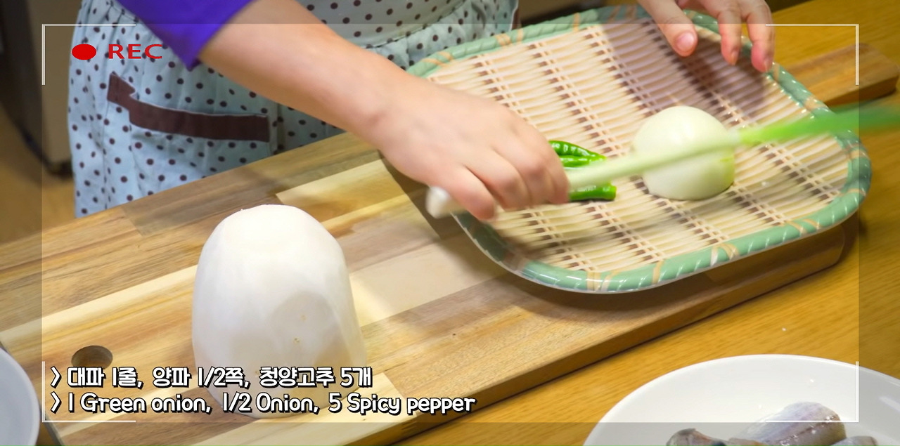 오늘 코다리조림 황금레시피에 들어갈 야채는 무 650g, 대파 1대, 양파 1/2개, 청양고추 5개이다. 코다리조림은 복잡하거나 많은 야채가 들어가지 않아도 정말 깔끔하고 맛있다.