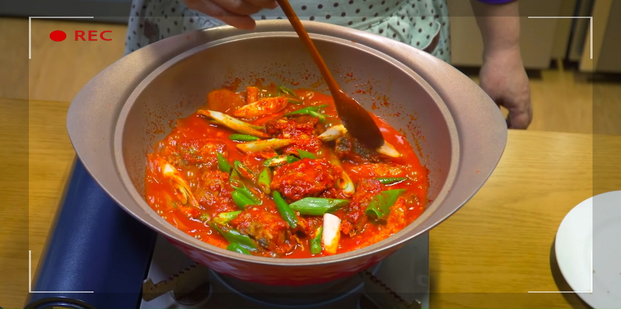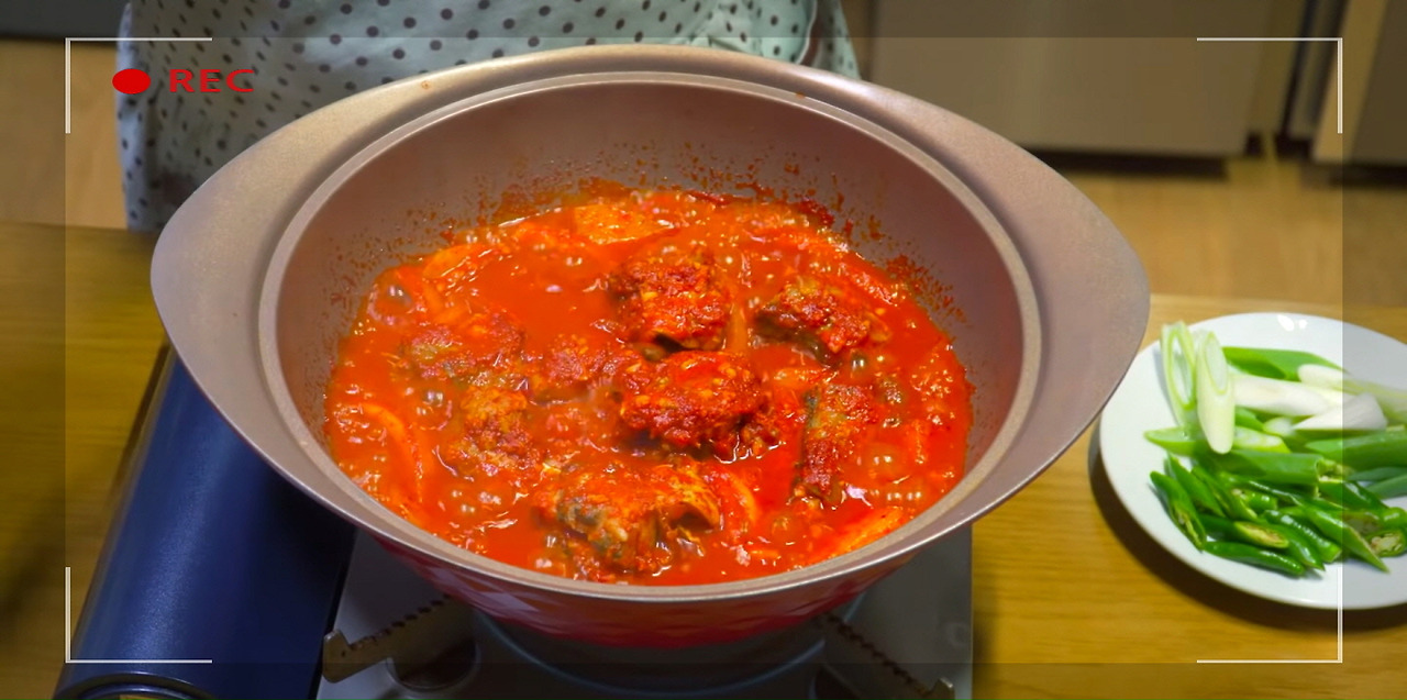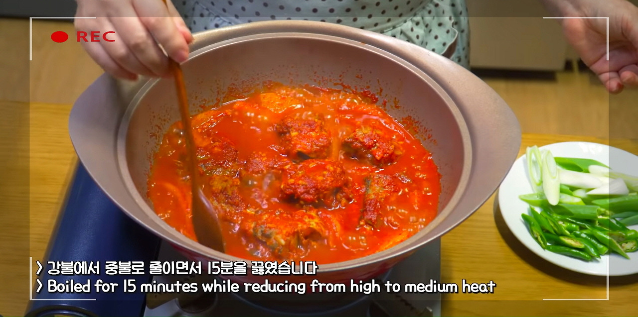 코다리조림이 끓어오르면 중불로 줄여 15분간 더 끓여준다.