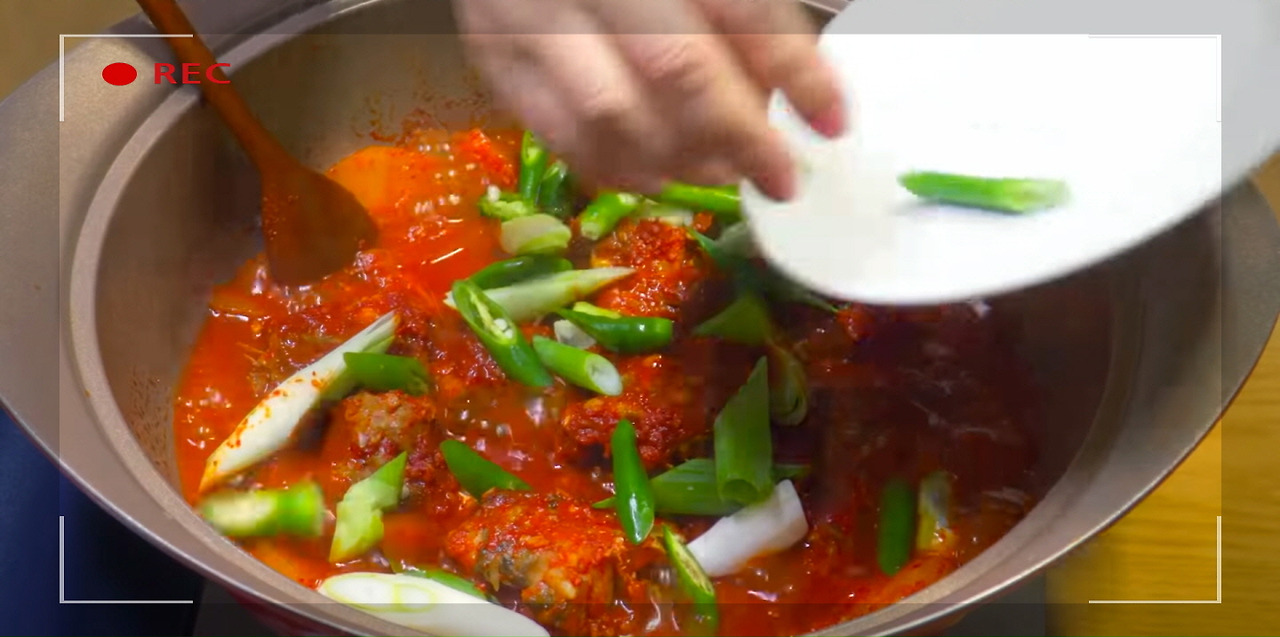 잘 익은 코다리조림에 마지막으로 파를 넣어주자. 잡내를 깔끔하게 잡아줘서 더욱 깔끔한 코다리조림이 완성된다.