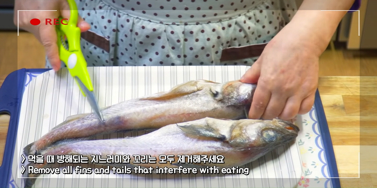 코다리조림을 먹을 때 방해가 되는 지느러미와 꼬리는 모두 제거해 주자.