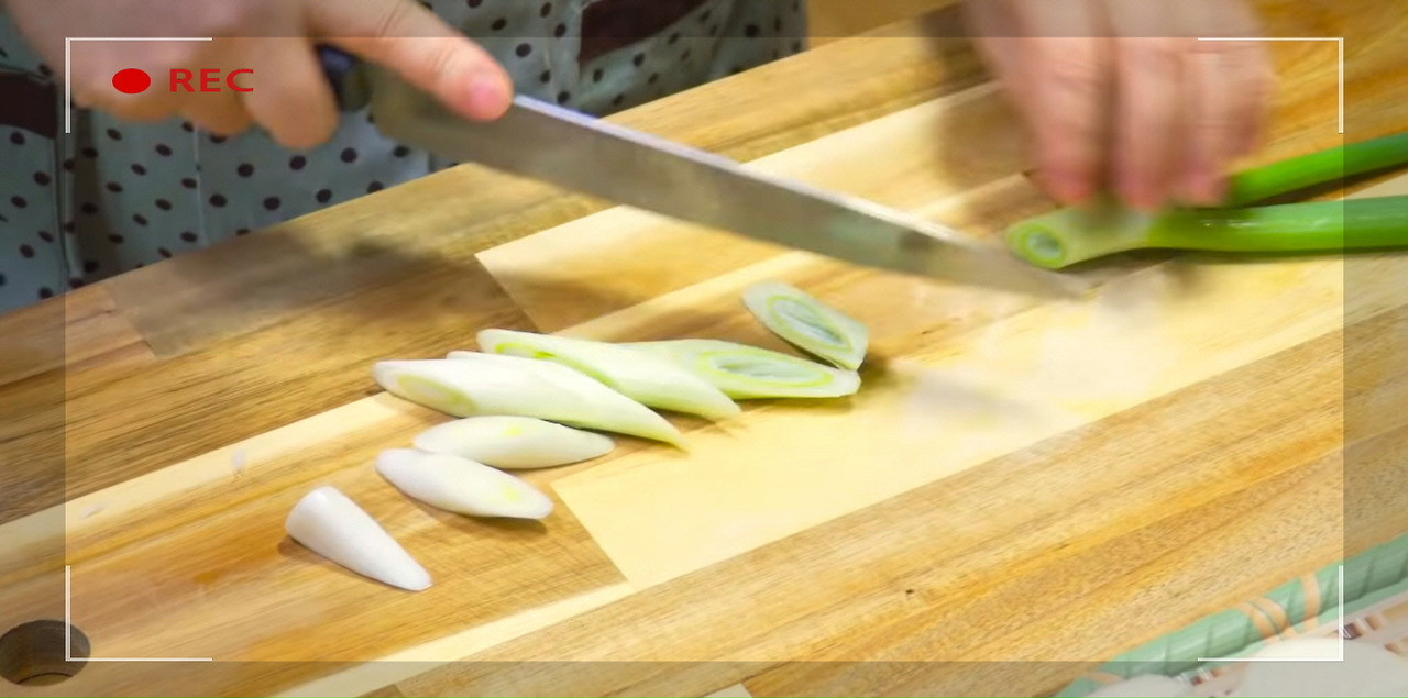 대파도 어슷썰기해 주자. 코다리조림에 남아 있을지 모를 비린내를 제거하는 데 큰 도움이 된다.