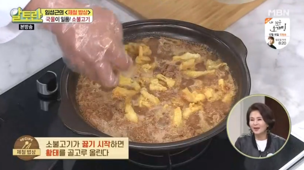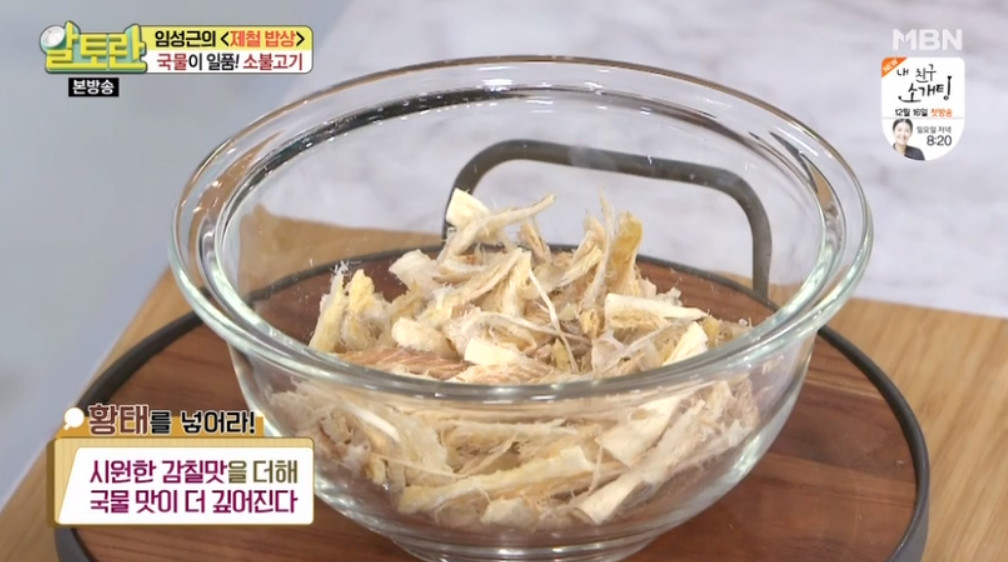 오늘 알려드릴 레시피의 비법을 소개해드릴게요. 바로 황태를 넣는 거예요. 밥도둑 소불고기의 핵심은 국물 맛인데요, 황태를 넣게 되면 시원한 감칠맛이 더해져서 국물 맛이 더욱 깊어진다고 해요.