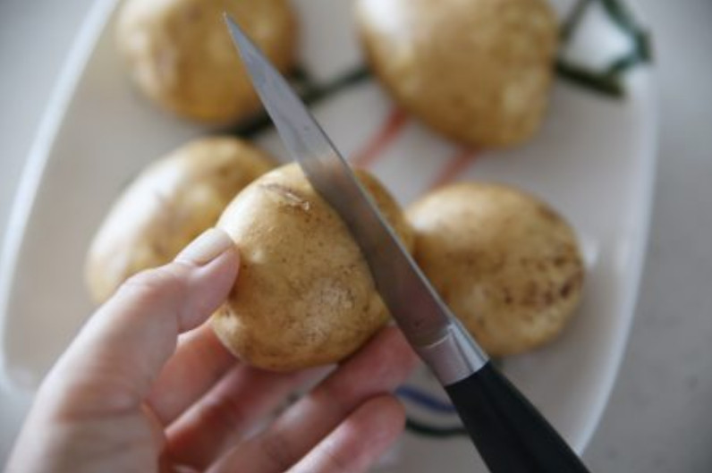 감자를 삶는 방법은 여러 가지가 있지만, 쉽고 맛있게 삶는 또 하나의 팁을 알려드리겠습니다. 작은 감자를 준비해 껍질째로 삶아보세요. 이때 감자의 껍질에 칼로 살짝 실금을 내는 것이 포인트입니다.