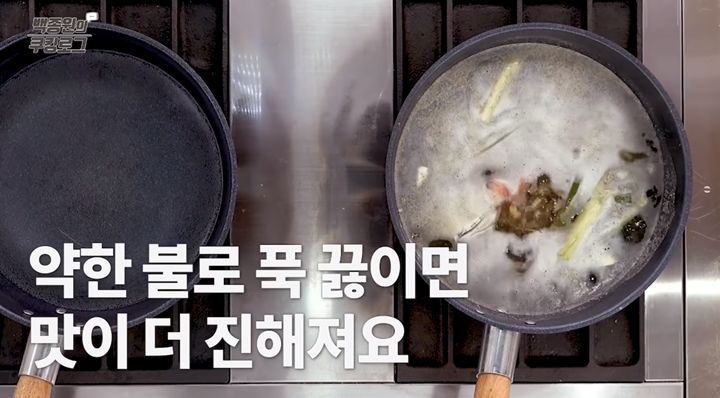 5. 다섯 번째로, 육수가 끓기 시작하면 불을 약하게 줄이고 약 1시간 정도 더 끓여주세요.