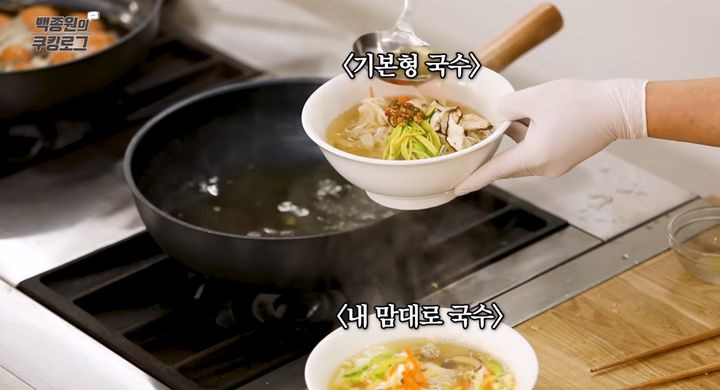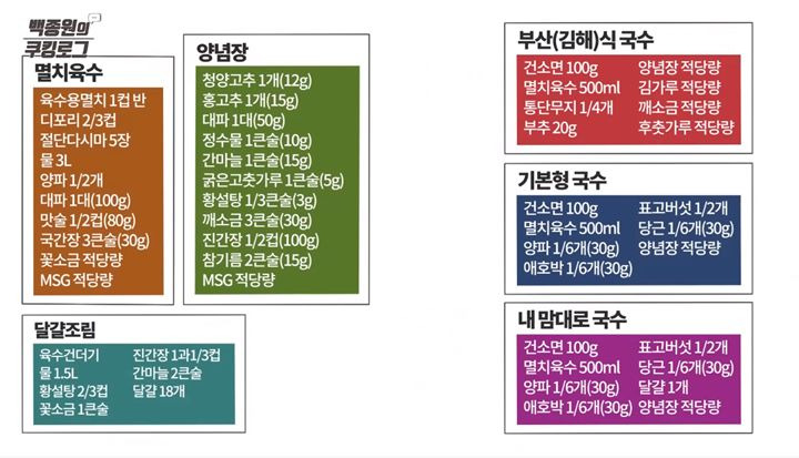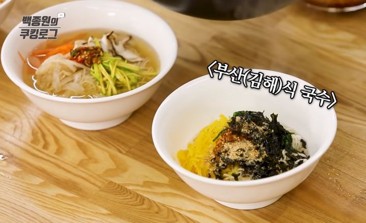 백종원 선생님께서는 기본형 잔치국수 만드는 법뿐 아니라, 부산(김해)식 국수 레시피도 소개해 주셨습니다. 이 레시피에는 통단무지와 부추가 들어간다고 하네요.