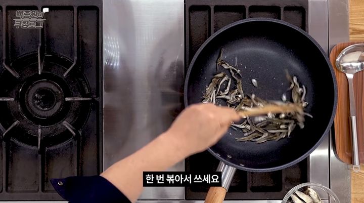 2. 두 번째로, 약한 불로 냄비를 살짝 달군 뒤 멸치와 디포리를 넣고 가볍게 볶아주세요.