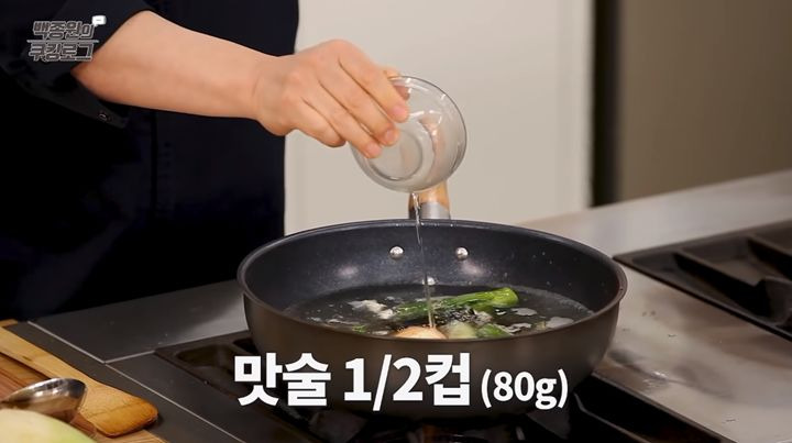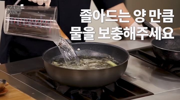 4. 네 번째로, 멸치와 디포리의 비린내가 사라졌다고 느껴지면, 물 3L와 양파, 대파, 다시마, 맛술을 넣고 끓여주세요.
