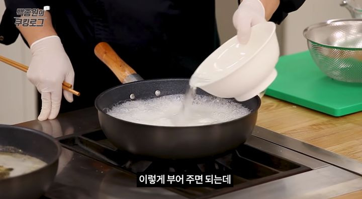 12. 열두 번째로, 소면을 넣고 물이 끓어오르면 넘칠 수 있으니, 그럴 때마다 찬물을 두어 번 넣어주세요.