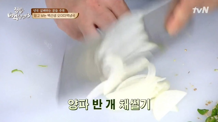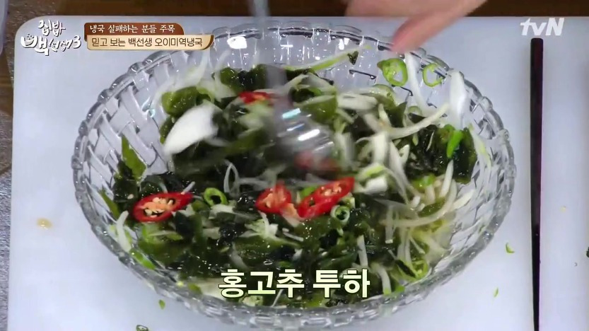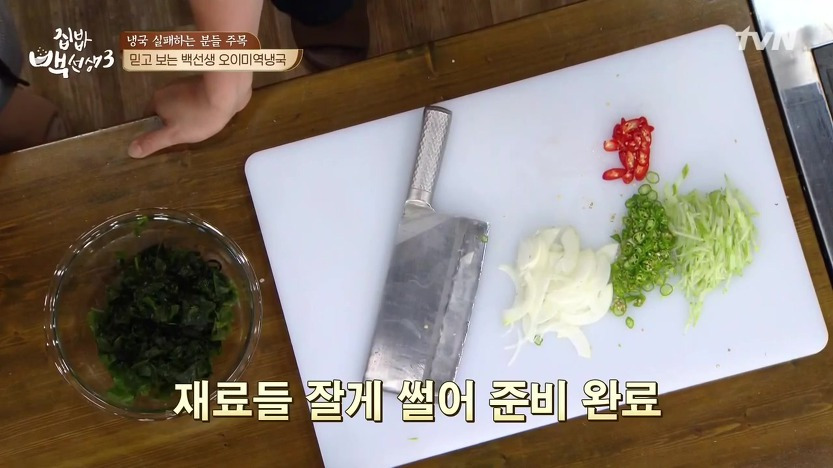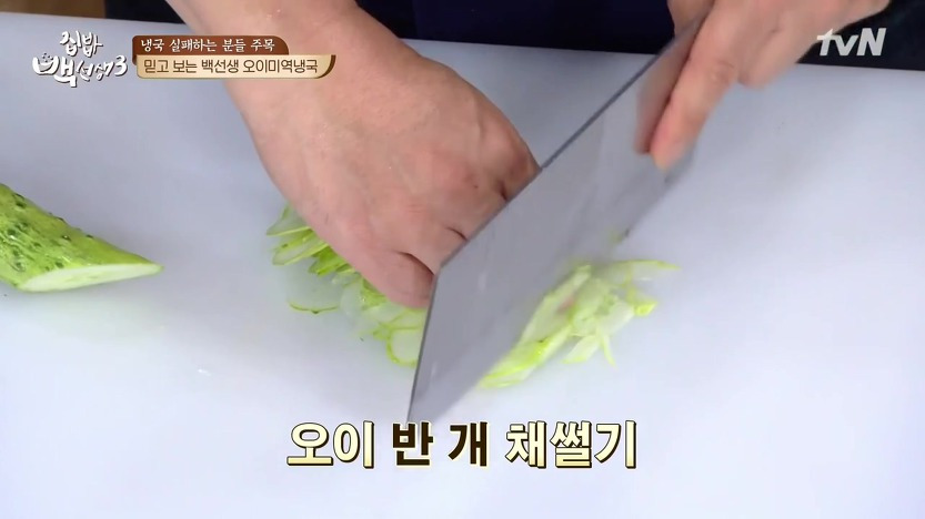오이냉국 황금레시피에 사용되는 채소들은 맛과 향이 잘 스며들도록 조금 더 잘게 썰어주면 더욱 맛있습니다.
