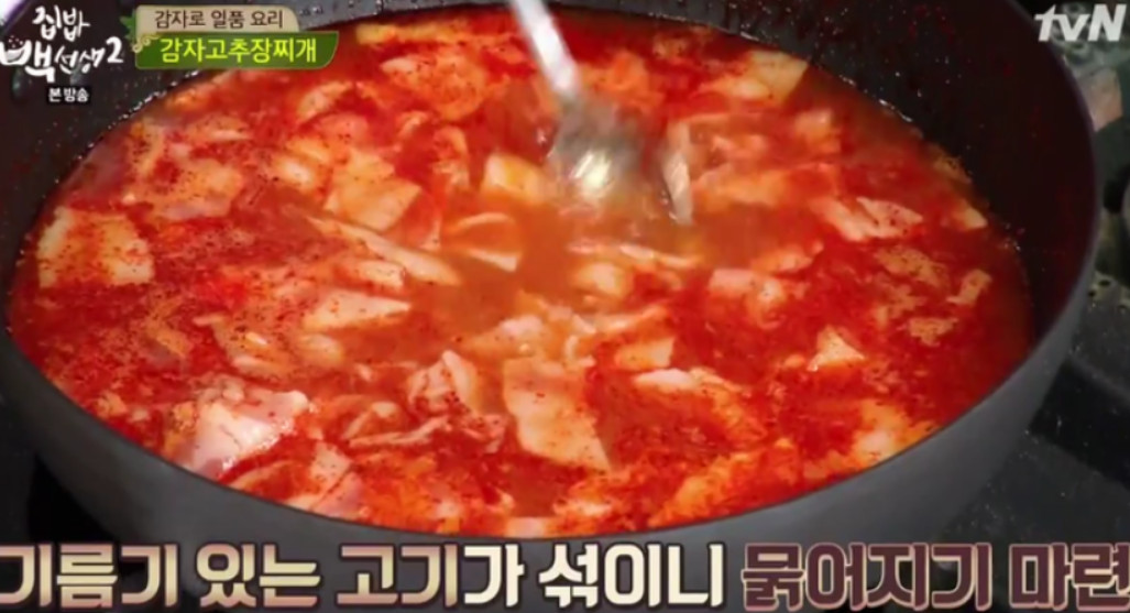 기름기가 많은 고기를 사용하면 국물이 묽어질 수 있으니, 고춧가루 1큰술을 추가해 주세요.