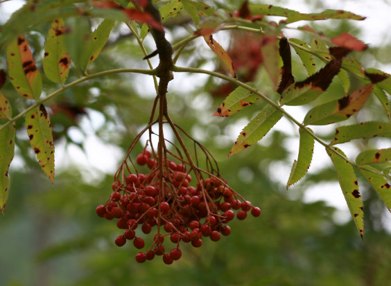 마가목은 한국 중남부, 일본, 사할린 등지에 자생하는 장미과의 낙엽 큰나무입니다. 나무껍질은 짙은 갈색이고, 잎은 어긋나게 4~7쌍의 작은 잎으로 이루어져 있으며, 길쭉한 타원형으로 가장자리에 잔톱니가 있습니다. 초여름에는 작고 하얀 꽃이 잎겨드랑이에 무리지어 피고, 열매는 빨갛고 둥글게 맺힙니다. 꽃은 초여름에 피고, 가을에는 열매가 주황빛으로 익습니다. 익은 열매는 따서 햇볕에 말린 뒤 약재로 사용됩니다.