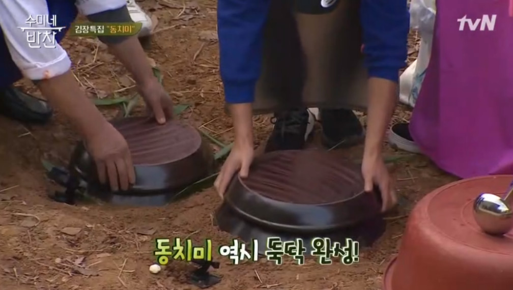 항아리가 있으신 분들은 바로 항아리에 동치미를 담으시면 됩니다. 항아리에 담으면 온도조절에도 좋고 발효에도 좋다고 해요.