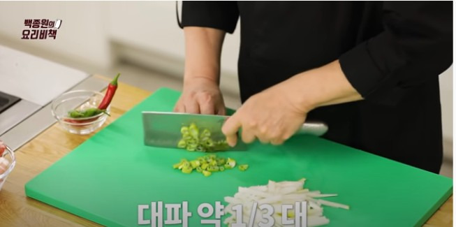 ● 대파는 송송 썰고, 청양고추 3개도 잘게 썰어 넣을 준비를 해주세요.