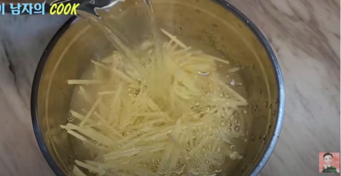 ● 채 썬 감자는 물에 약 15분 정도 담가 전분을 제거해주세요.