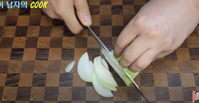 ● 양파도 반 개를 채 썰고, 청양고추는 반으로 자른 뒤 얇게 어슷 썰어 채 썰어주세요.