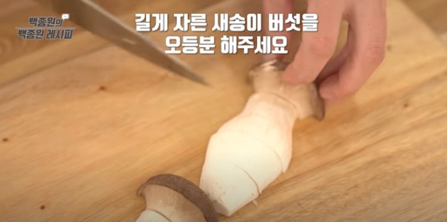 ● 표고버섯은 4등분으로 깔끔하게 썰고, 새송이버섯은 길게 반으로 가른 뒤 5등분 정도로 잘라주세요.