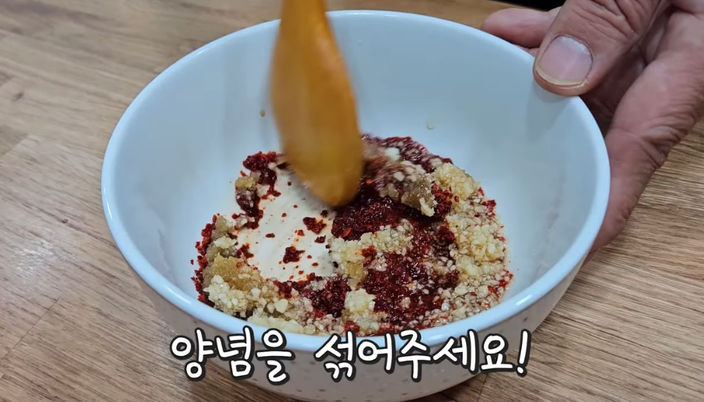 진간장 2스푼, 된장 1/3스푼, 설탕 1/2스푼, 다진마늘 1스푼, 고춧가루 3스푼, 소주 2스푼, 생강청 1/3스푼