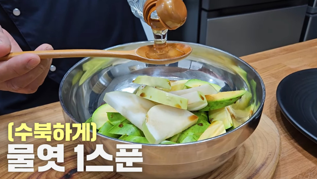 2. 애호박 1개 + 무 150g + 국간장 2스푼 + 물엿 1스푼