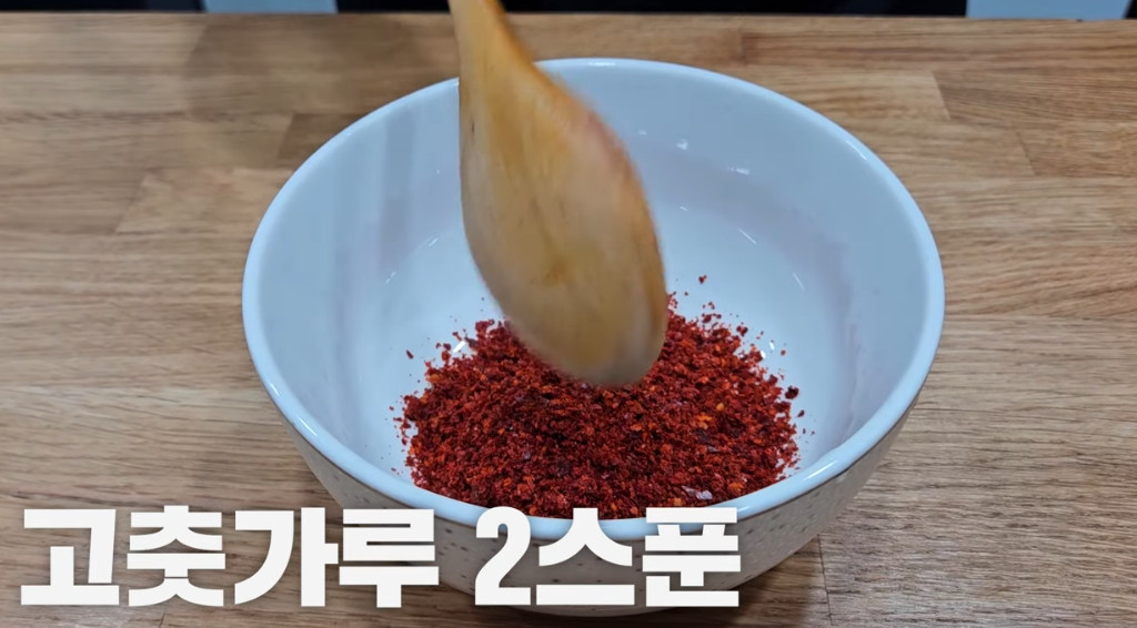 15. 마지막으로 썰어둔 대파, 청양고추, 홍고추를 올린 뒤 고춧가루 1스푼을 살짝 뿌려주세요. 이렇게 마무리하면 색감도 좋고 풍미도 한층 살아나요.