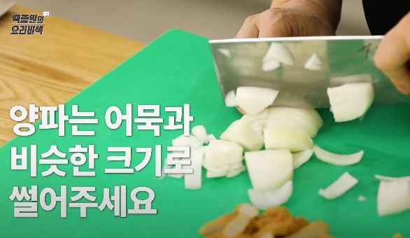 3. 양파는 어묵과 비슷한 크기로 썰어주세요.