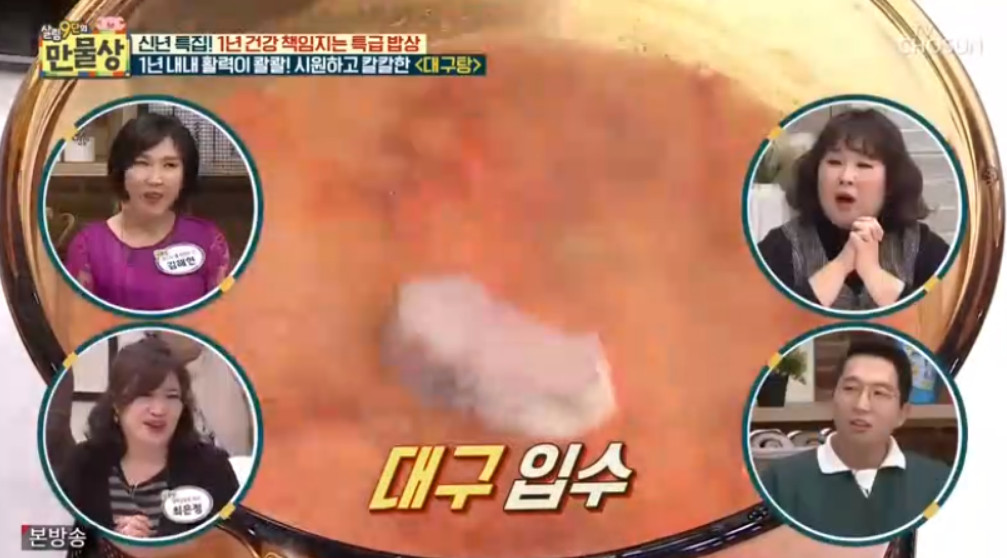 오늘은 대구탕 맛있게 끓이는 법 (만물상 레시피)을 알려드리겠습니다. 1월이 제철인 대구는 한방에서 겨울철 원기회복으로 적극 추천되는 생선입니다. 대구는 날씨가 쌀쌀해지고 면역력이 떨어지는 요즘 장어와 전복만큼이나 비타민이 풍부하여 우리 몸에 활력을 불어넣어 준다고 하는데요, 맛도 좋고 몸에도 좋은 대구로 만드는 대구탕 맛있게 끓이는 법을 지금부터 소개합니다.