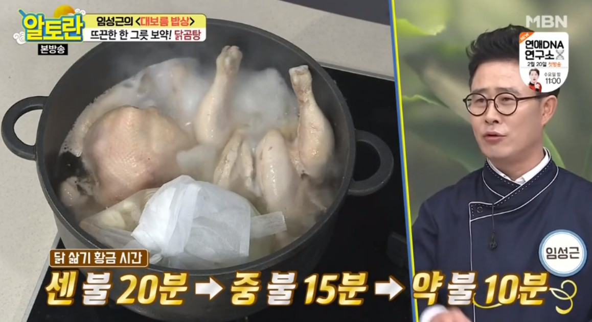 15. 닭 삶는 황금 시간은 총 40~50분가량인데요, 중간중간 불조절을 해주셔야 해요. 먼저 센 불에서 20분 삶다가 중불로 낮춰 15분을 삶고 마지막에 약불로 줄여서 10분 삶아주시면 됩니다.