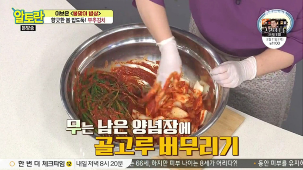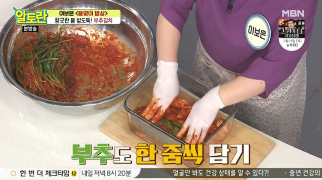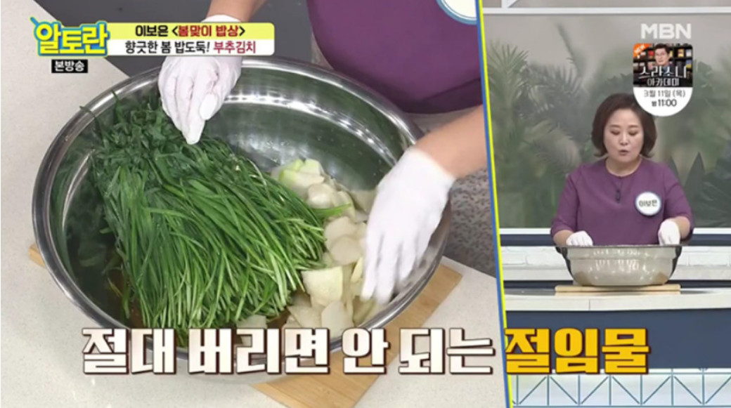 오늘은 이보은 요리 연구가의 부추김치 맛있게 담그는법을 소개해드리겠습니다. 사실 부추는 봄에 나는 것이 가장 좋다고 평가받는데요, 특유의 쌉싸름한 향과 단맛 덕분에 봄 부추는 건강에 아주 좋은 음식으로 여겨진답니다. 그래서 인삼과도 견줄 만하다고 할 정도예요.