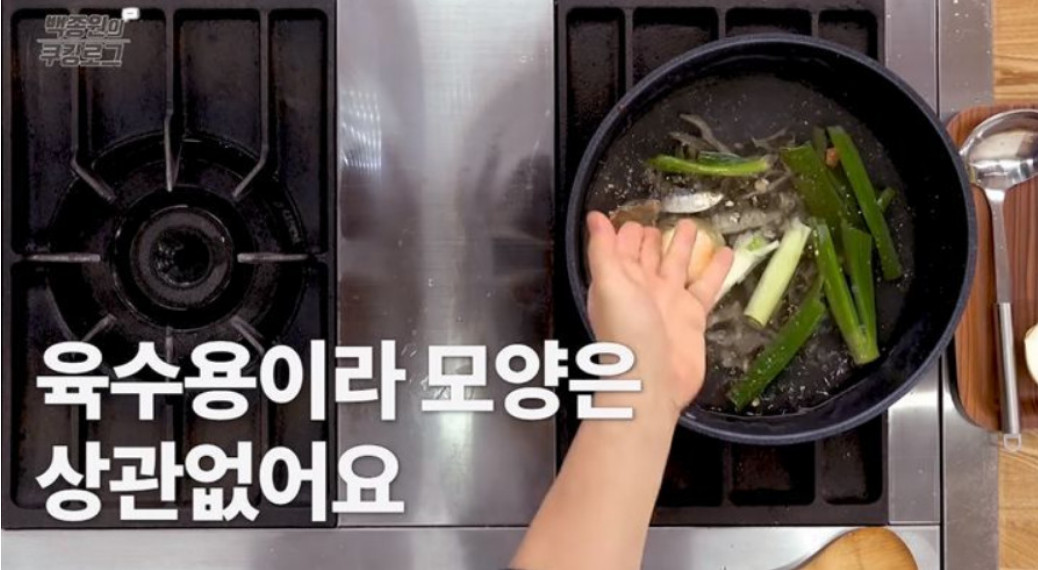 ▶육수 재료 : 육수용멸치 1과 1/2컵, 디포리 2/3컵, 절단다시마 5장, 물 3L, 양파 1/2개, 대파 1대(100g), 국간장 3큰술(30g), 맛술 1/2컵(80g), MSG 적당량, 꽃소금 적당량