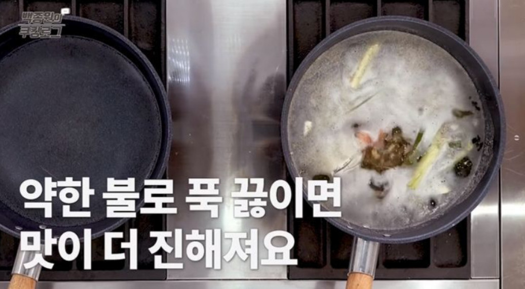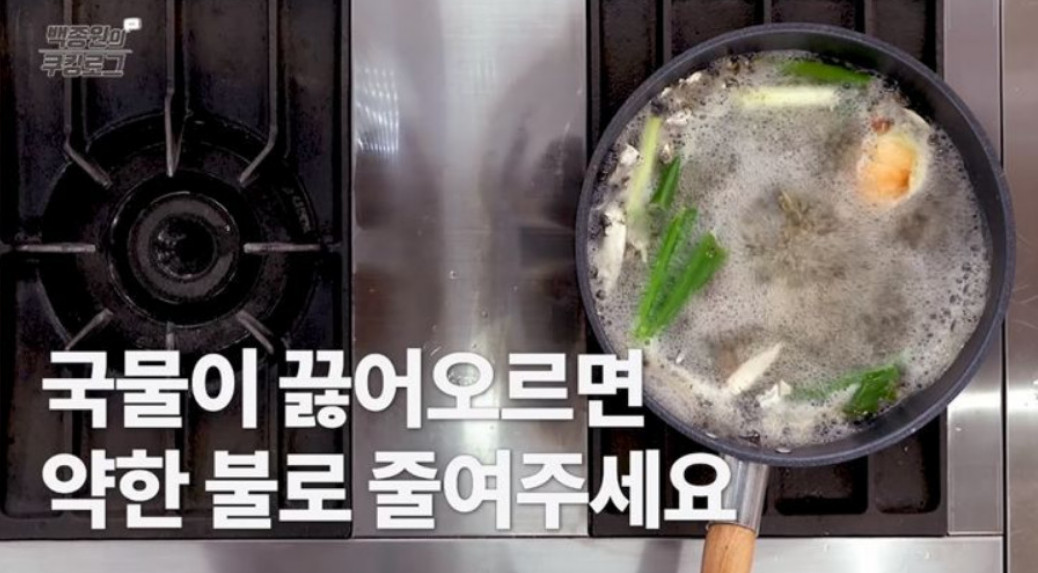 5. 국물이 끓어오르면 약한 불로 줄여서 1시간 정도 더 끓여주세요. 이렇게 하면 멸치와 다양한 재료들의 맛이 잘 어우러진 깊은 맛의 육수가 완성될 거예요.