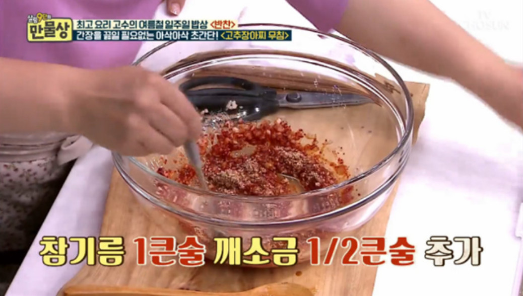 12. 여기에 숙성한 고추장아찌를 양념과 함께 섞으면 고추장아찌 무침이 완성돼요.