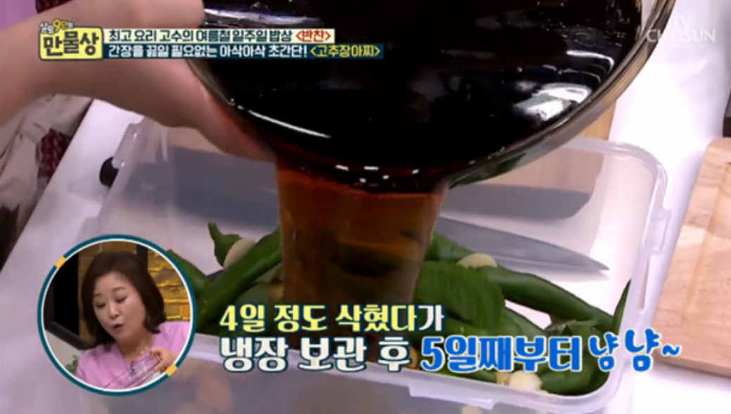 8. 이렇게 고추를 간장물에 담가 두고 4일 정도 상온에서 삭힌 다음, 냉장 보관해 주세요. 그리고 5일째부터 드시면 됩니다.