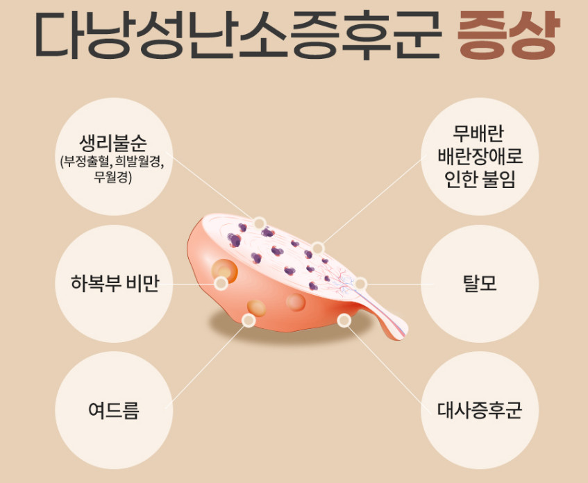다낭성 난소증후군은 난소에서 남성 호르몬인 안드로겐이 과도하게 분비되어 난소에 여러 개의 난포가 형성되는 질환입니다. 이로 인해 정상적인 월경 주기가 어긋나 배란이 제때 이루어지지 않아 무월경, 여드름, 다모증, 탈모, 자궁 출혈, 불임 등의 증상이 나타날 수 있습니다.