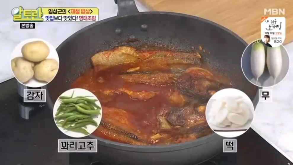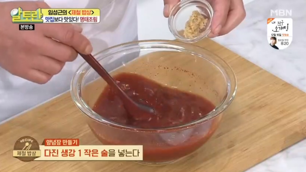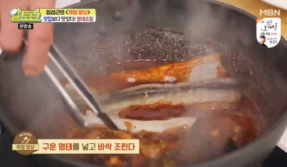 여기서 달인의 비법이 나오는데요, 바로 명태조림 양념장을 명태 대가리와 함께 한번 끓여주는거랍니다. 이렇게 하면 맛의 풍미가 훨씬 깊어진다고 해요. 끓이고 사용하는 것과 안끓이고 사용하는 것은 차이가 많이 난다고 하니 꼭 양념장을 한번 끓여주세요.