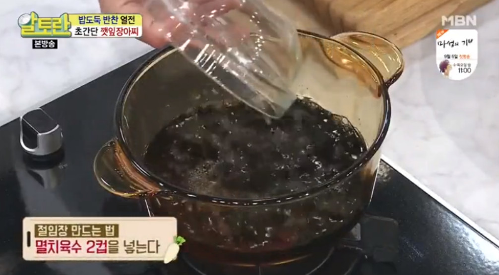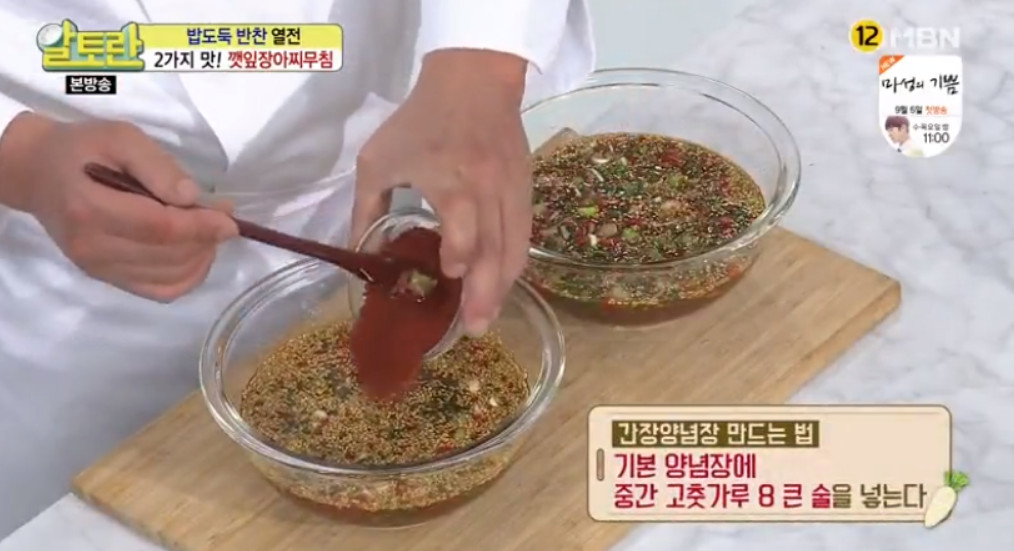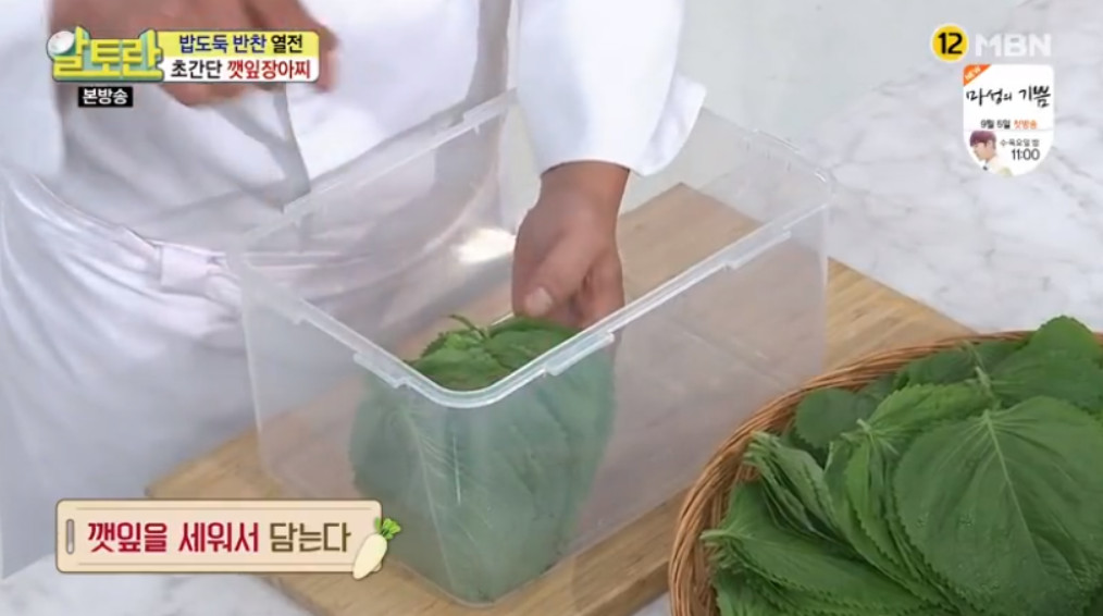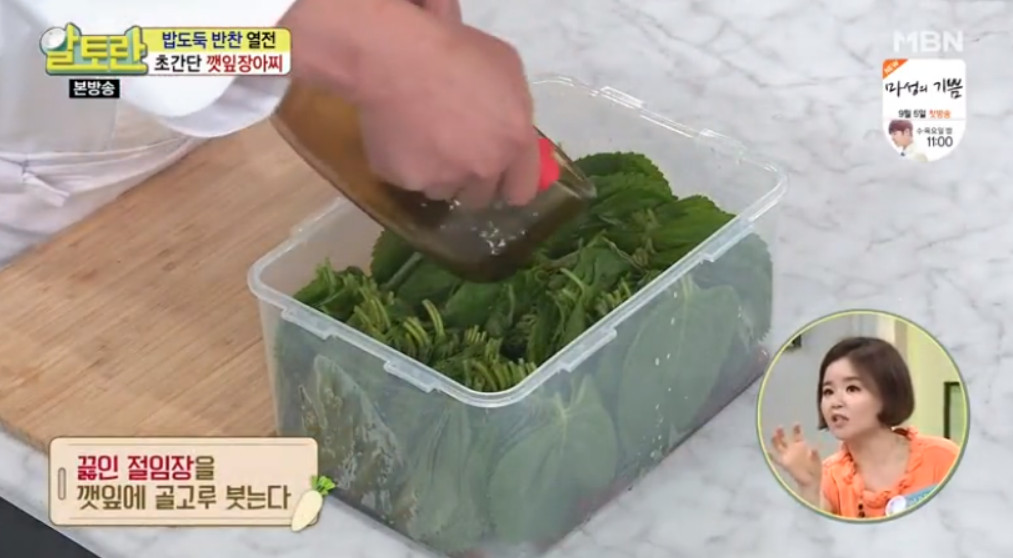 깻잎장아찌 무침의 알짜비법은 깻잎을 간장에 절이는 것입니다. 만약 깻잎을 소금물에 절이게 되면 최소 10일 이상은 절여야 하고, 깻잎이 짜고 질겨진다고 해요. 반면에 깻잎을 간장으로 절이게 되면 1시간만 절여도 된다고 하네요.