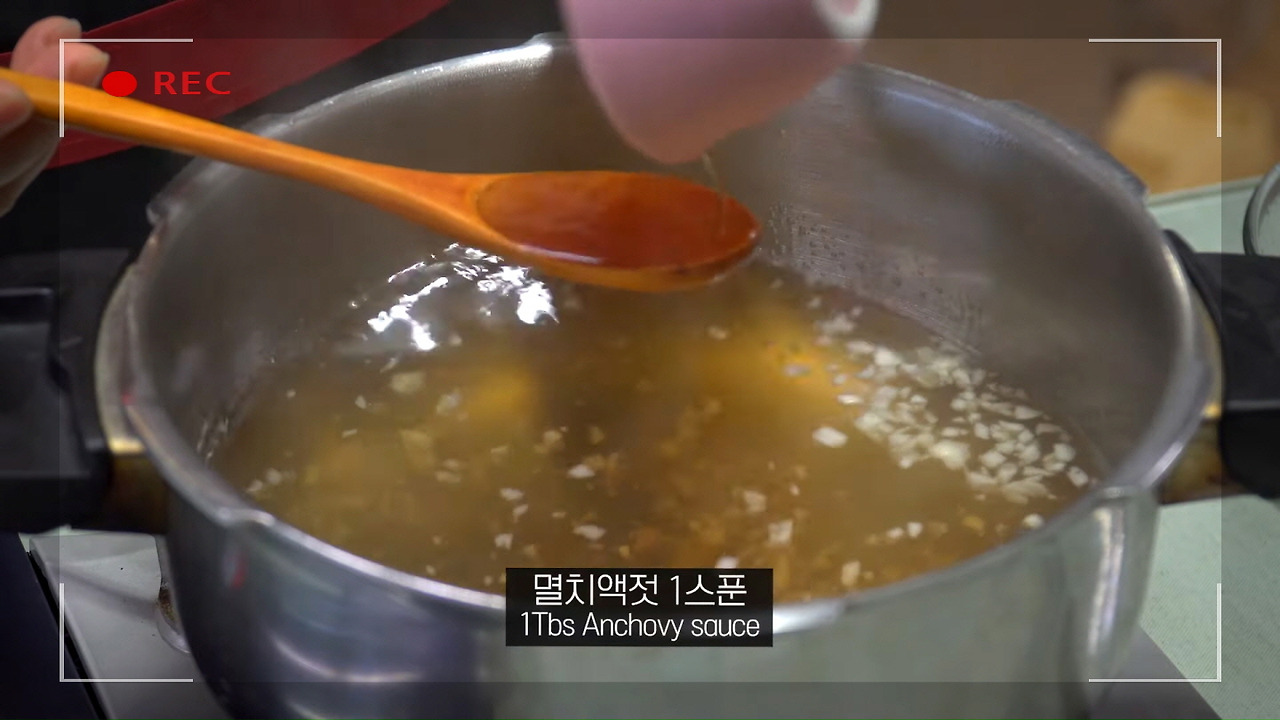 여기에 다시마와 멸치 12마리 정도를 추가로 넣어주면 더욱 깊은 맛을 낼 수 있다.