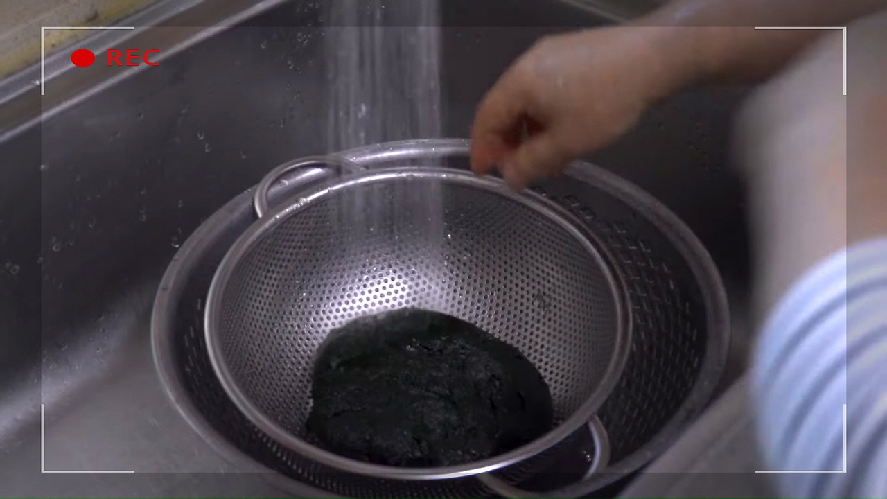 잘 풀어가며 씻어준 매생이는 채에 밭쳐 물기를 빼준다.