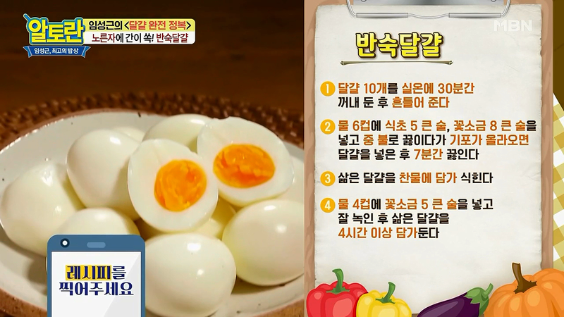 다음은 달걀 삶는 황금 레시피입니다. 달걀은 단백질, 지방, 탄수화물, 무기질, 비타민 등 5대 영양소가 골고루 들어 있는 완전식품으로, 영양 균형이 뛰어납니다. 또한 두뇌 건강에 좋은 콜린과 레시틴 등 유익한 성분도 풍부해 우리의 건강에 큰 도움을 줍니다.