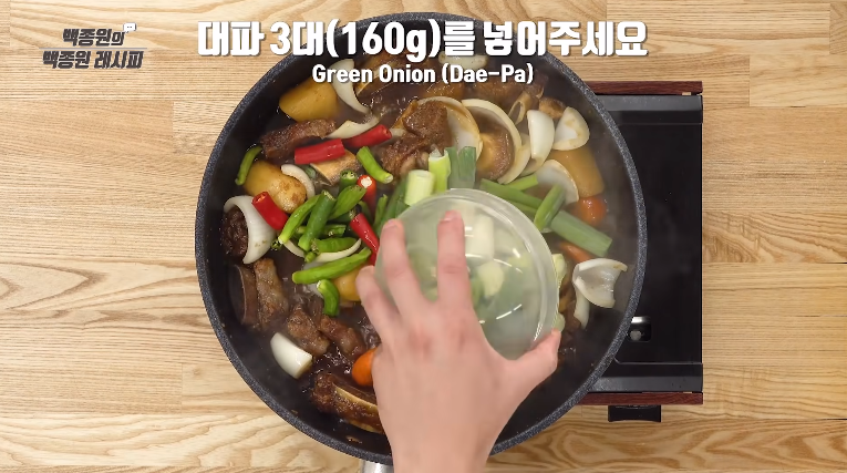 마지막으로 청양고추, 꽈리고추, 홍고추를 넣고 잘 섞어주면, 백종원 소갈비찜 황금레시피로 맛있는 갈비찜이 완성됩니다.