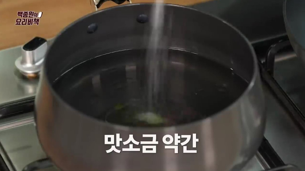 1. 우선 면을 삶아야 합니다. 넉넉한 냄비에 정수물 1L를 붓고, 올리브 오일 2큰술과 맛소금 약간을 넣어 끓여주세요.