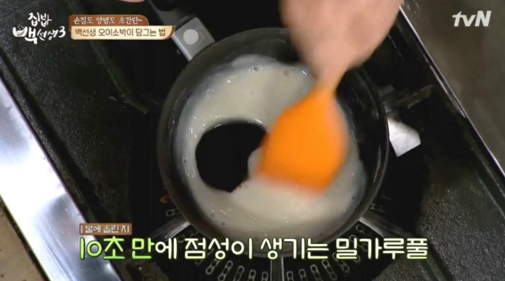 밀가루 풀 : 물 1/3컵, 밀가루 1/2T