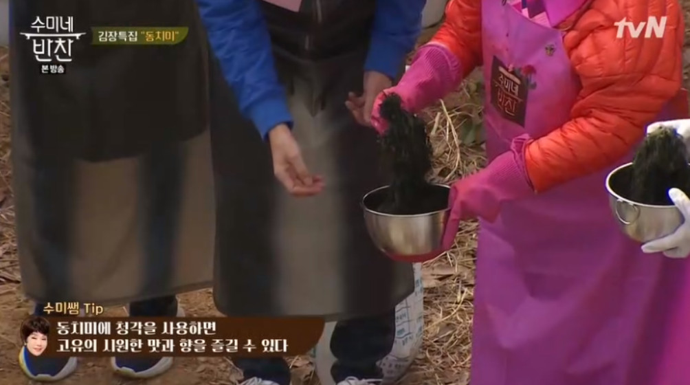 먼저 김수미 선생님이 알려주신 겨울철 동치미의 핵심은 소금이라고 해요. 좋은 소금을 쓰는 것이 김장의 최고 비법이라고 하시네요.
