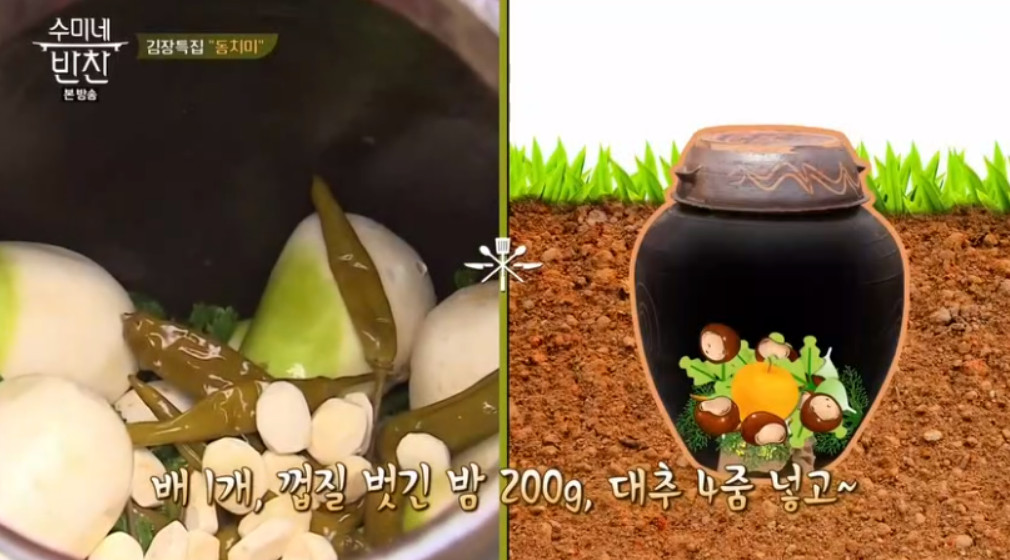 오늘 알려드릴 동치미 쉽게 담그는법은 김장 시즌을 대비해서 따라 해보실 수 있도록 수미네 반찬에 방영된 레시피입니다. 집에 장독대가 있으신 분들은 장독대에 담으시면 되구요, 없으신 분들은 김치냉장고가 있으시면 김치냉장고를 활용해 담으셔도 됩니다. 그럼 지금부터 추운 겨울을 맞이해 김장용 동치미 쉽게 담그는법을 알려드리겠습니다.