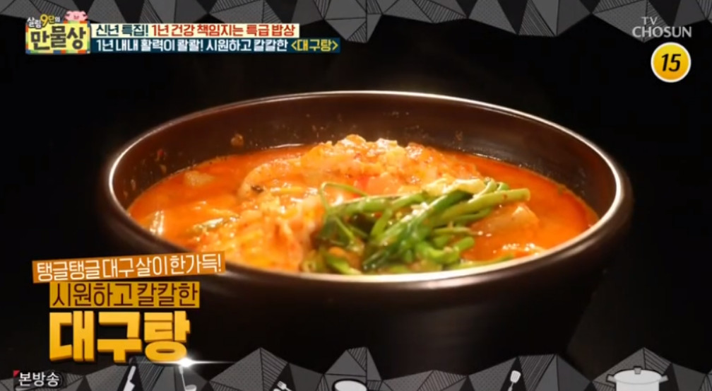 오늘은 대구탕 맛있게 끓이는 법 (만물상 레시피)을 알려드리겠습니다. 1월이 제철인 대구는 한방에서 겨울철 원기회복으로 적극 추천되는 생선입니다. 대구는 날씨가 쌀쌀해지고 면역력이 떨어지는 요즘 장어와 전복만큼이나 비타민이 풍부하여 우리 몸에 활력을 불어넣어 준다고 하는데요, 맛도 좋고 몸에도 좋은 대구로 만드는 대구탕 맛있게 끓이는 법을 지금부터 소개합니다.