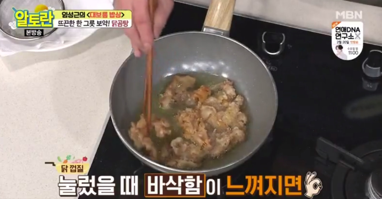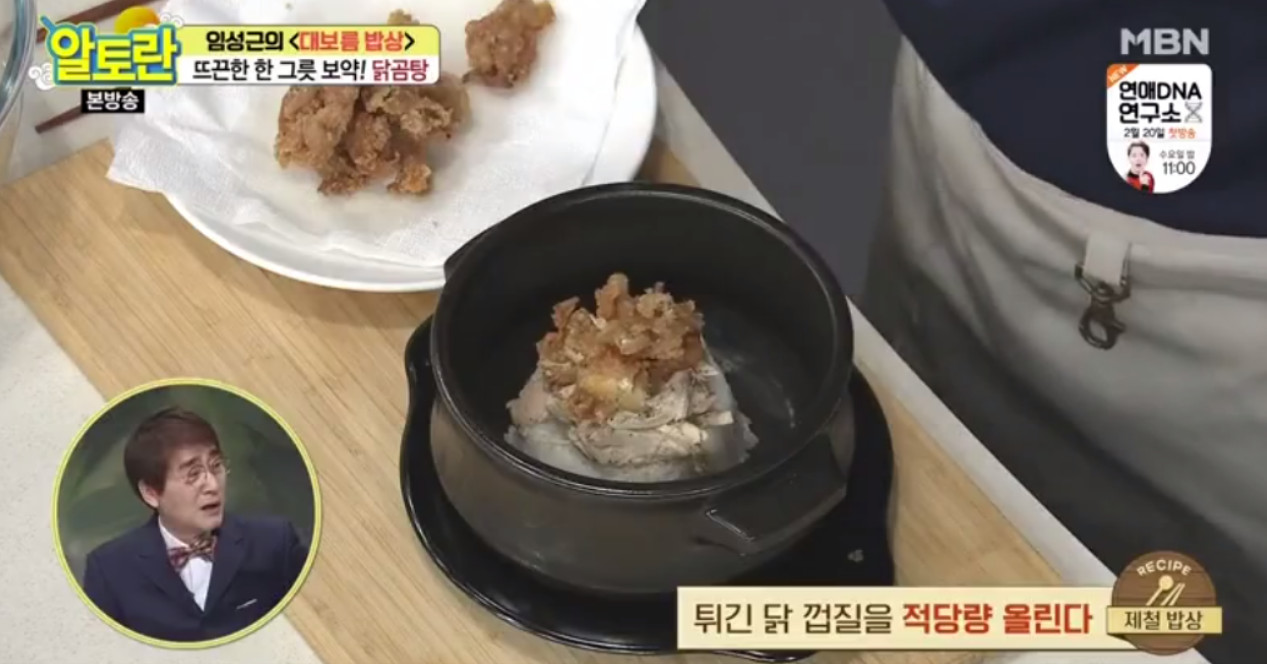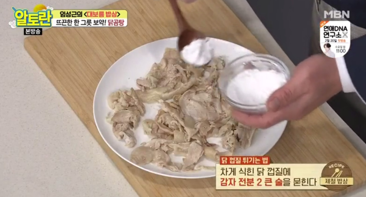 22. 여기서 임성근 연구가님의 비법이 들어갑니다. 바로 닭 껍질을 튀기는 건데요, 닭 껍질을 튀겨서 닭곰탕에 넣으면 바삭한 식감과 고소한 맛으로 닭곰탕의 풍미를 더해준다고 해요. 닭 껍질은 반드시 식힌 후 사용해 주세요.