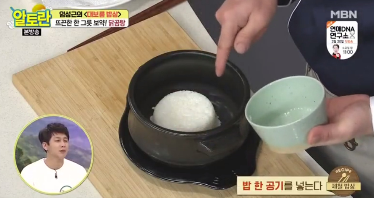 26. 마무리 단계입니다. 뚝배기에 밥 한 공기를 넣어주세요.