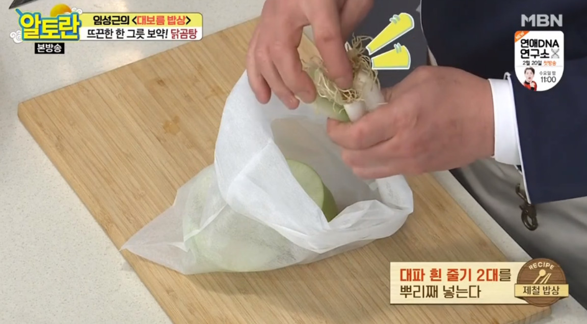 9. 대파 흰 줄기 2대도 뿌리째 넣어주세요.